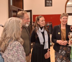 Denis Sprague and Delia Gilbert (great, great, great grandchildren) and Holly Gilbert, Delia’s daughter – along with past Deputy Editor of The Lancet and fellow Wakley aficionado, David Sharp.